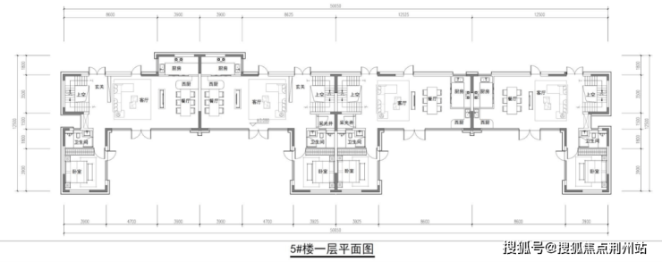 7#洋房标准层平面图如下:同步曝光2个户型,2梯2户。