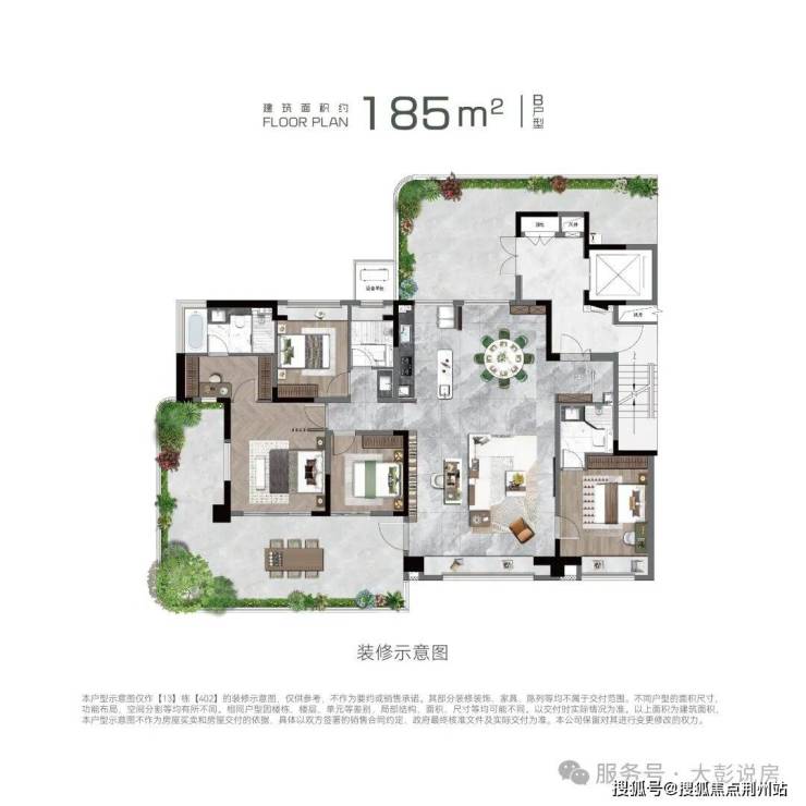 ·产品规划:建面约150㎡、185㎡、220㎡,户均约30-50㎡空中庭院