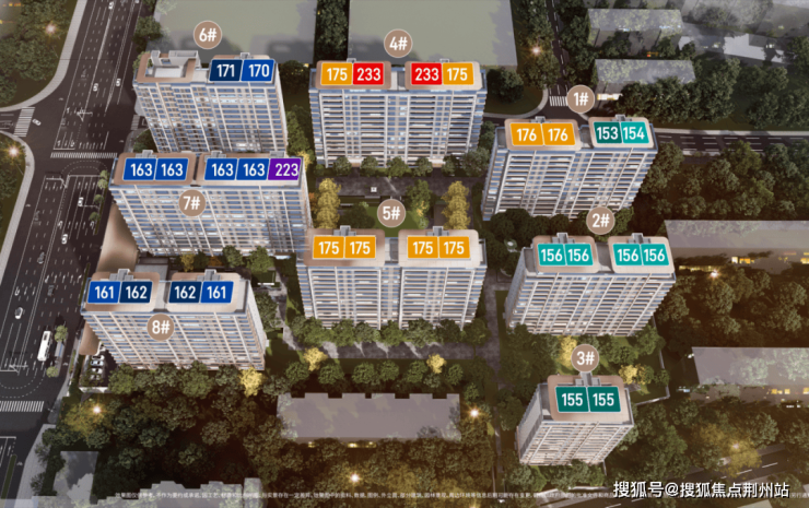 5#楼位于小区中心景观南侧的楼王位置,全是175平的大四室;8#楼南侧全是低矮楼栋,大明湖的观湖视野更好,规划的则是162平的四面宽和161平的四叶草户型;7#楼紧邻着小区主入口和下沉庭院景观,尤其是东边户223平的大平层,可以享受小区最好的景观视野。