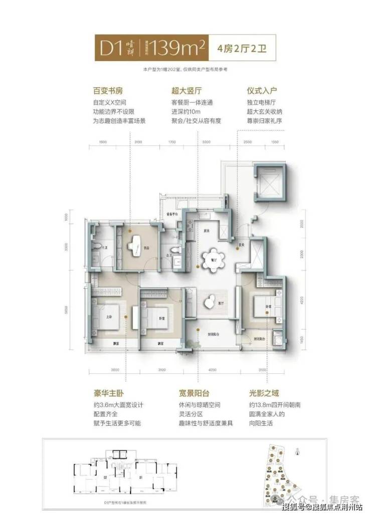 建面约139㎡南向四开间,引阳光肆意倾洒,LDK一体化宽厅,打破空间隔阂,成为家人互动、朋友欢聚的核心场域,餐厨开放式设计,让烹饪不再孤单,自定义X空间,实现“不为人生设限”,次卧家政阳台,兼顾实用与观景,约3.6米奢阔主卧,妥帖安放身心,精细化收纳,生活井然有序......
