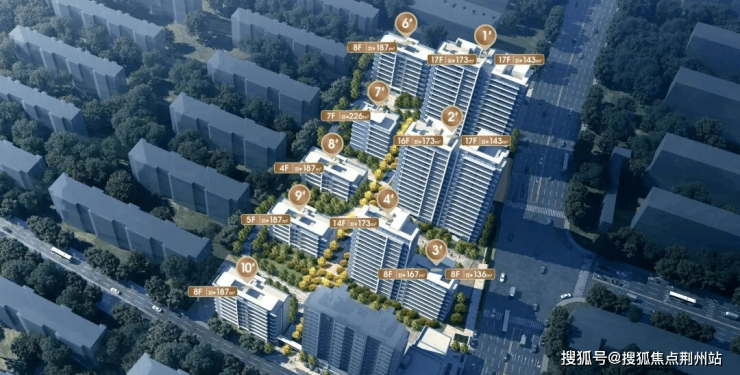 楼栋:总10栋;(3#6#10#总高8层;7#总高7层;8#总高4层;9#总高5层;1#总高17层;2#东单元16层,西单元17层;4#总高14层)