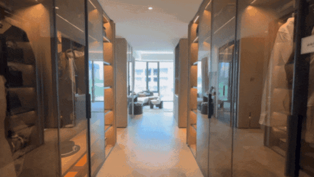 然后,有些豪宅给衣帽间做出了仪式感,形成一种类似玄关的空间