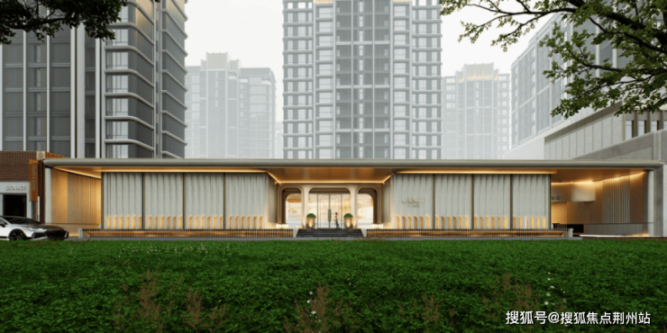 建筑以暖色为基调,香槟金为点缀,全幅玻璃幕墙搭配澄澈镜幕弧形立面,点睛之笔以暖调金属勾勒出的金属画框,品质感与昭示性极强!