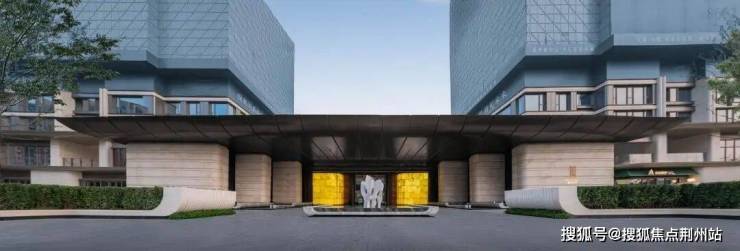 四向归家的大门设计,打破了常规楼盘至多两个入口的局限,让出入更加自由,生活动线也更符合日常需求。整体抬地5.4米的设计,不仅抬高了地势,同时将不利设施巧妙隐藏,更塑造了归家的仪式感。南向主入口以玉琮造型石柱、铝板挑檐和汉白玉雕塑营造出温润如玉的入口氛围,同时配备无障碍平接设计和多类电梯,确保每一次归家都顺畅便捷。