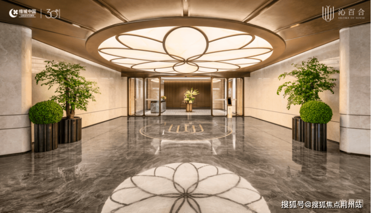 整座大门约43米恢弘门头,第一眼的尺度感足以让人惊艳,再搭配200多片百合花瓣组成的金色吊顶,是目前板块内非常气派的归家大门,视觉效果非常震撼。