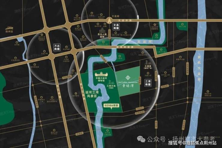 景运湾坐拥三湾商圈、文昌商圈与万达商圈三重辐射,大学路直达万象汇等繁华商业体,与约3800亩生态绿肺隔街对望,附近还有中国大运河博物馆、M会员商店等配套,同时德基集团正式进驻三湾运河文化街区,未来可感知世界潮流。