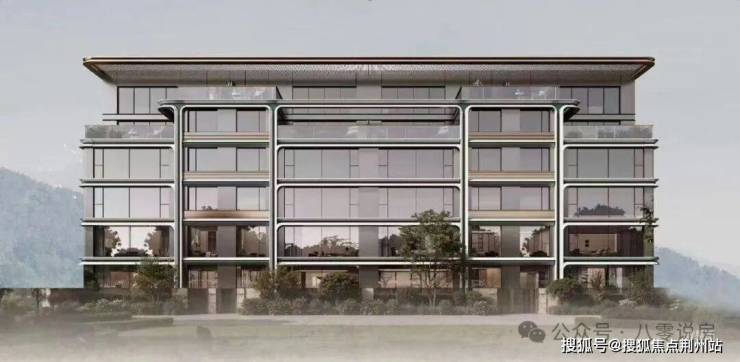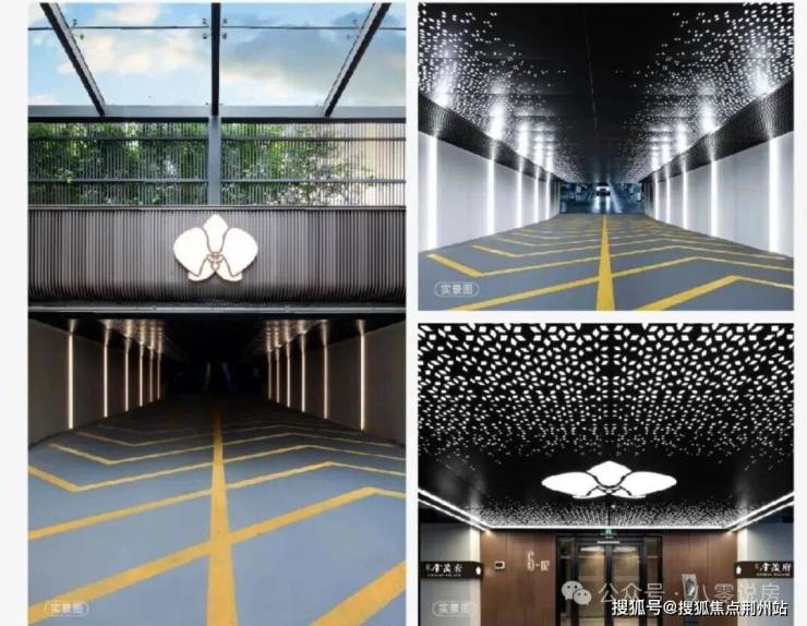 高阶美学:33米宽奢挑檐入户门厅,米白基底加透光云石,兼具艺术与仪式感;石材、铝板、幕墙...公建化外立面.