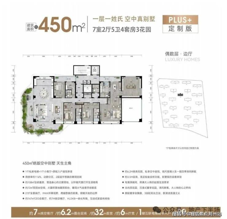 银丰玖玺城珑和院450平户型也是一层一户的限定款。