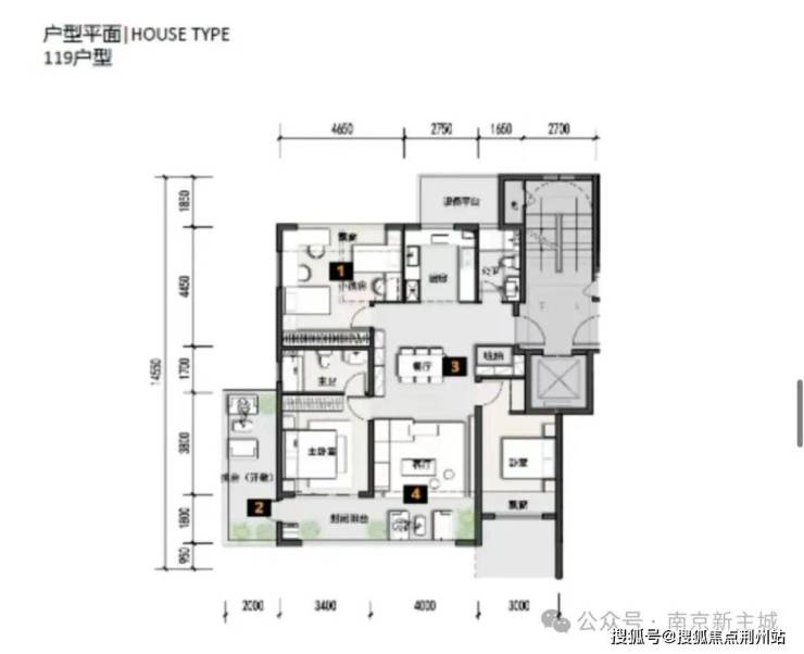 119平分布在5-11层的小区外围一个单元,讲人话就是靠马路,从户型图可以看到,好像做的是一梯两户设计,如下图所示: