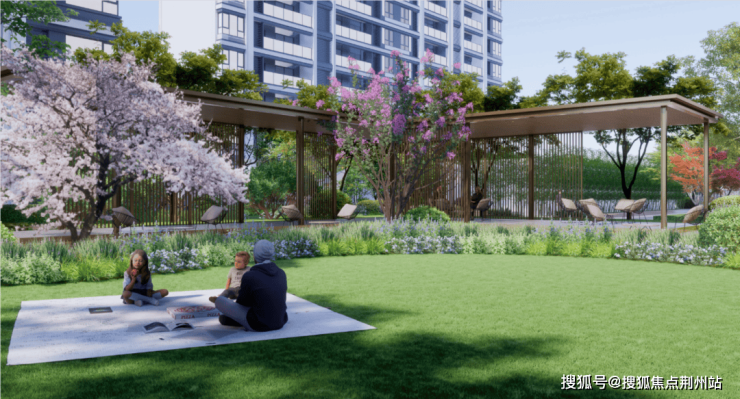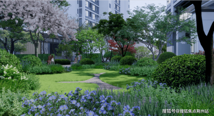 首层设置架空层活动空间,围绕景观轴打造了约400米社区休闲慢跑道,60余种植被的社区园林景观。