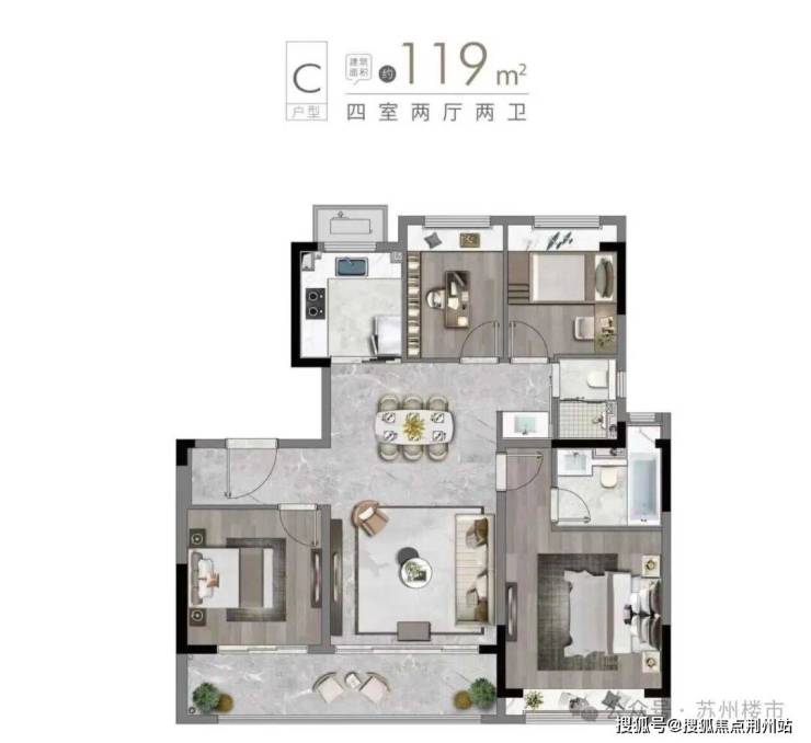 海棠喜舍或许是最优解!它地处园区飞地,由三大国企联合开发,6-8F洋房社区,建面约119-136㎡,精装4房,总价仅约180万起,性价比如此之高,在苏州属于独一份的存在。