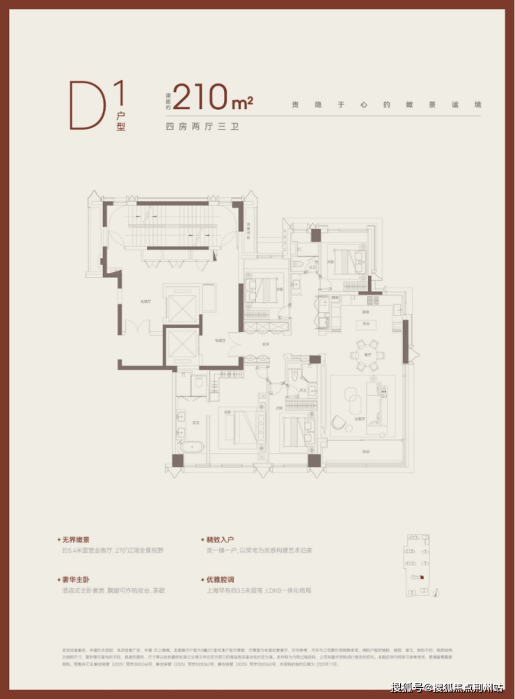 【3#210㎡户型】——南向俯瞰下沉式庭院,北侧私藏浮光池院。