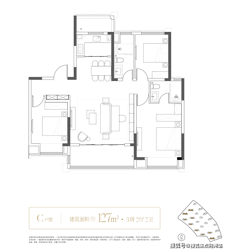 房源2:128.9㎡,三房两厅两卫,改善标杆