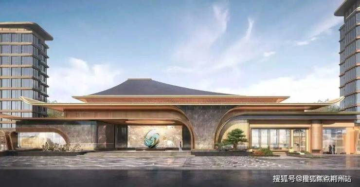 威仪大门,宽65m、高14m,形取故宫重檐庑殿顶,演绎当代东方门第