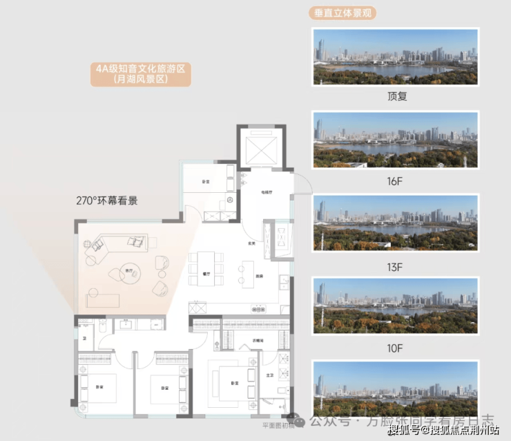 4、稀缺的观湖资源:项目北面的4、5号楼拥有直面月湖的景观视野,这在汉阳新房市场中、算是非常稀缺的,而且视野更加开阔,没有老城区的拥挤感。