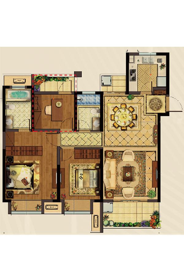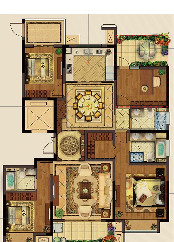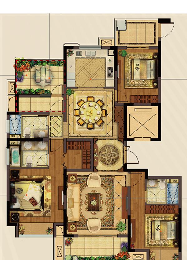 4室2厅3卫-义乌新城吾悦广场9#B2户型