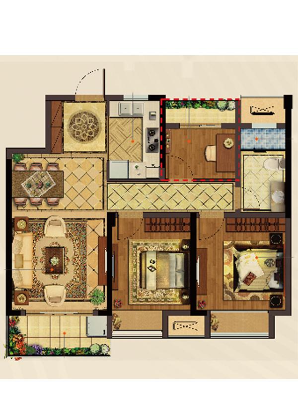 3室2厅1卫-义乌新城吾悦广场13#f户型