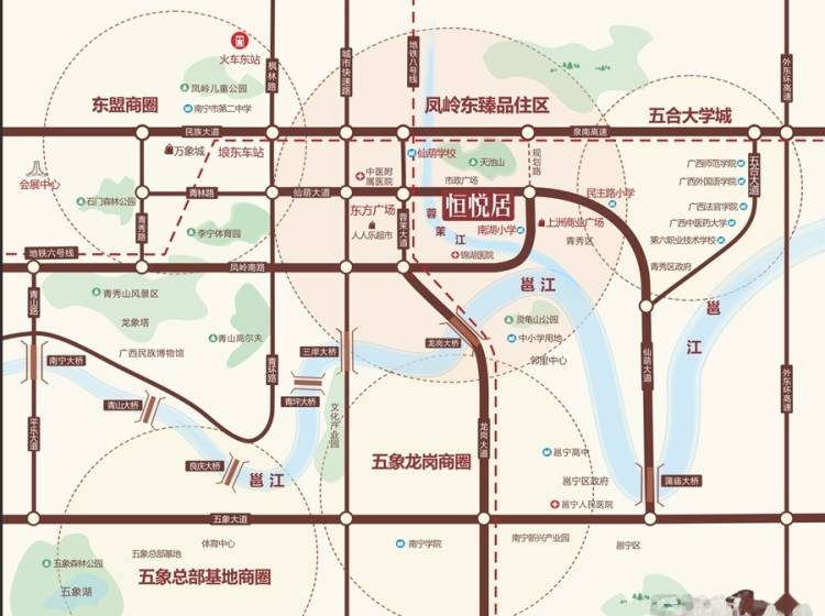 恒悦居位于青秀区仙葫大道中,东接青秀区政府,西至会展中心,北抵凤岭东站,南连五象新区。 拥有四横三纵的交通枢纽,仙葫大道、凤岭南路、民族大道(延长线)、五合大道、绕城高速(城市二环)等城市主干道纵横交错,直抵东站,快速接驳万象城;南宁大桥、三岸大桥、龙岗大桥、青坪大桥(在建)、仙合大桥(规划)等大桥飞架邕江南北,直达五象新区。