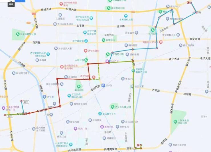 增设站点:人民医院、汽车南站(健康路)、电力二处、济宁七中。