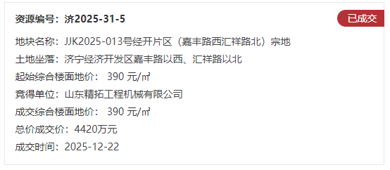 地块五:JJK2025-013号经开片区(嘉丰路西汇祥路北)宗地【山东精拓工程机械有限公司竞得】
