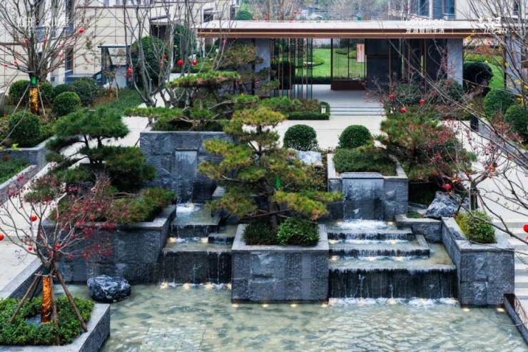穿过气质典雅的社区大门,一副复刻富春山居图的中式美学画卷徐徐展开,项目以“依山而建、枕水而居”为核心理念,打造“山、水、林、石、花”五重立体景观:入口处的迎宾叠水幕墙气势磅礴,内部园林景观轴的与云山水影相映生辉,更有移植自南方的珍稀乔木与本地植被巧妙融合,形成“三季有花、四季常绿”的沉浸式园林体验。