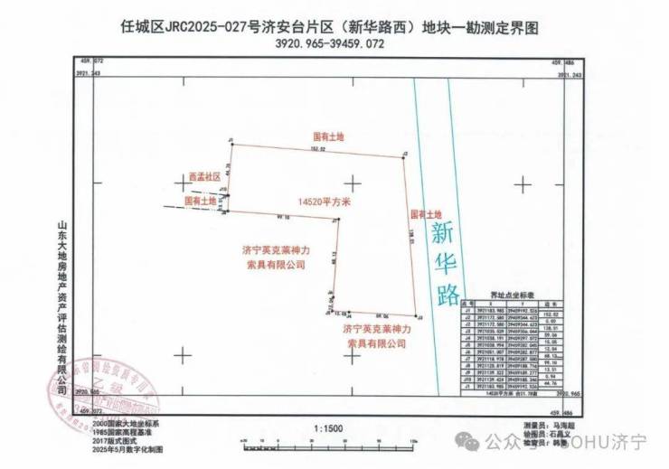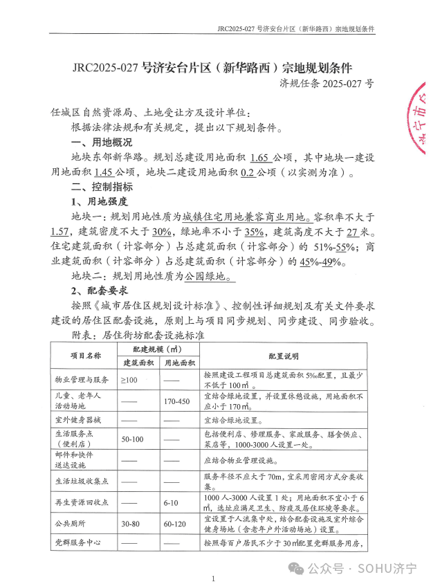 地块一:任城区JRC2025-027号济安台片区(新华路西)地块一【山东立国房地产有限公司竞得】