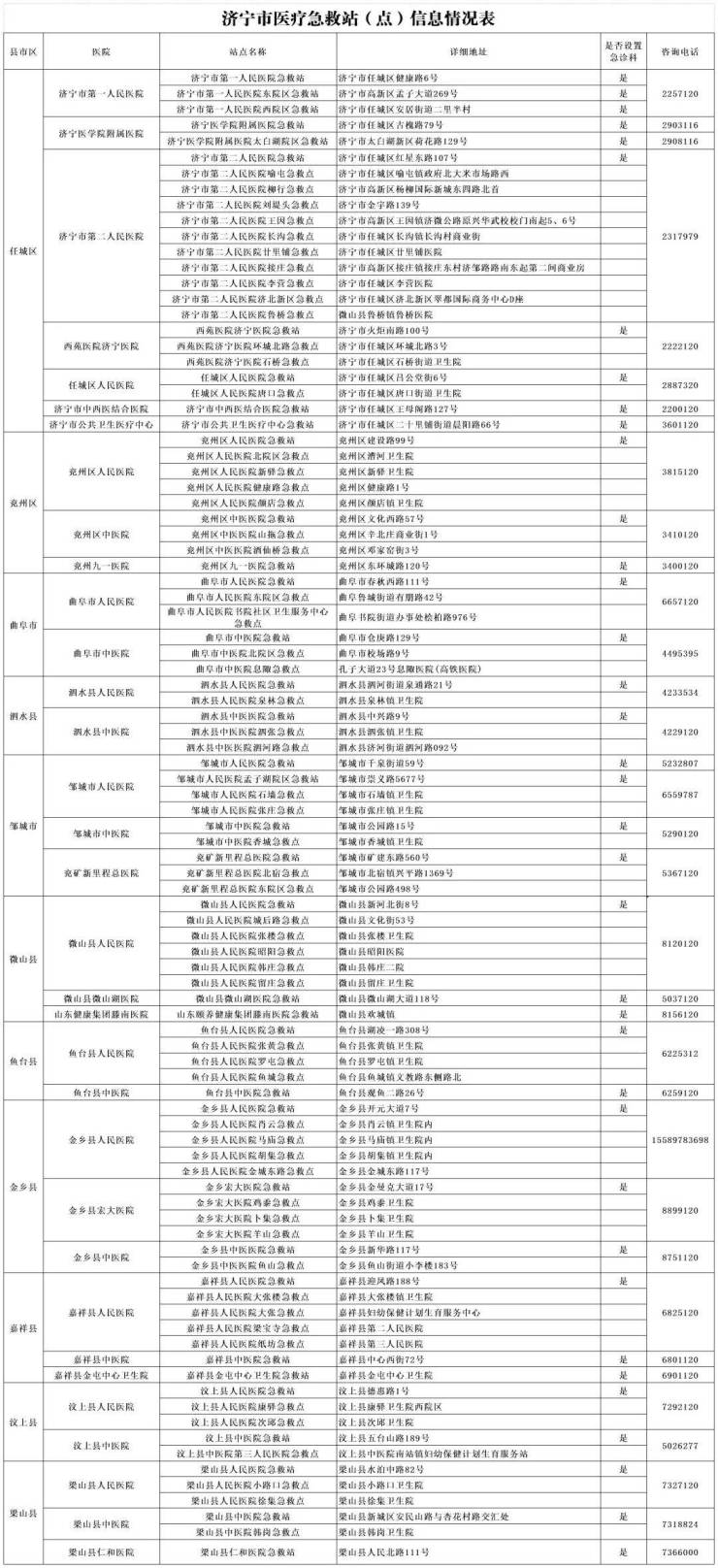住为方便群众看病就医,现将济宁市医疗急救站(点)信息情况进行公示。