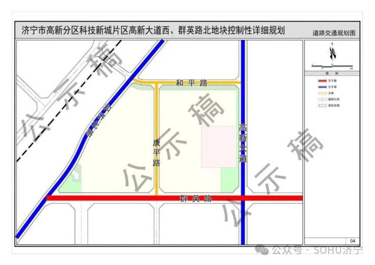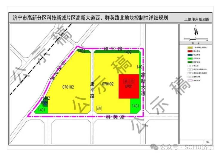 《济宁市高新分区科技新城片区高新大道西、群英路北地块控制性详细规划》(草案)