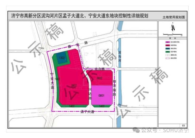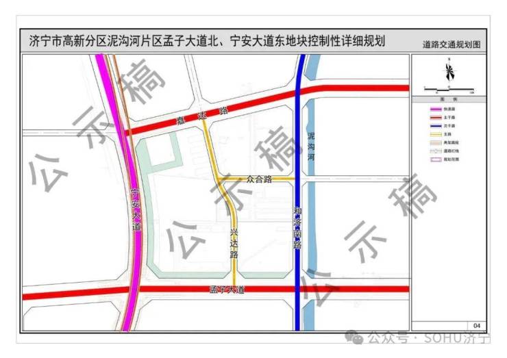 《济宁市高新分区泥沟河片区孟子大道北、宁安大道东地块控制性详细规划》(草案)