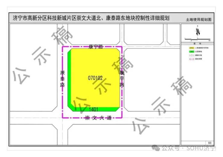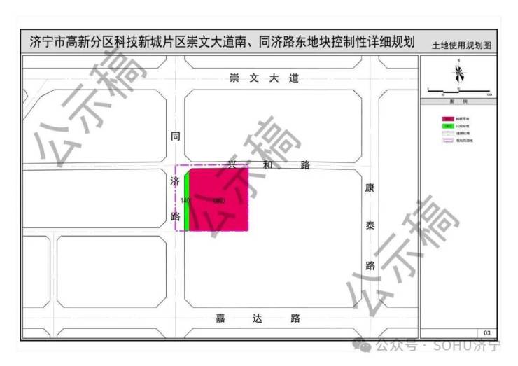 《济宁市高新分区科技新城片区崇文大道北、康泰路东地块控制性详细规划》(草案)