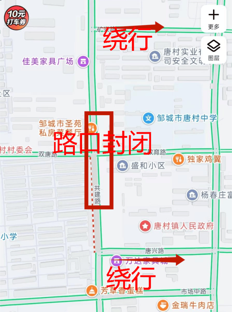 根据邹城热力应急抢修需要,即日将在唐村镇华电大道与教育路双唐路交汇路口路段进行封闭施工,现将有关事项公告如下: