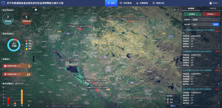 桥梁群结构监测系统项目包括G105济宁段6座大中桥,通过布设低功耗、易安装、高效率的智能感知设备,结合传感技术与大数据分析,实现对桥梁结构健康状况24小时实时监控和评估。该系统如同桥梁安全的“智慧管家”,能智能识别早期病害,异常情况下立即启动预警,辅助制定科学养护计划,避免盲目维修,延长桥梁使用寿命,保障结构安全。
