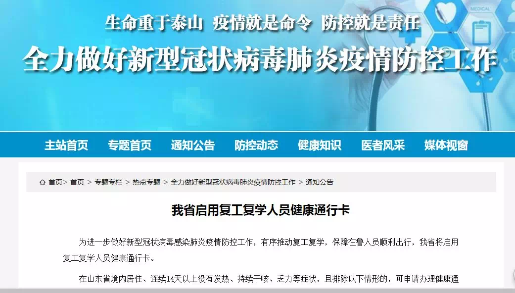 记者从山东省卫生健康委员会网站获悉,为进一步做好新型冠状病毒感染肺炎疫情防控工作,有序推动复工复学,保障在鲁人员顺利出行,山东省将启用复工复学人员健康通行卡。