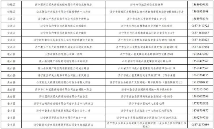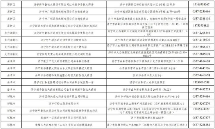 建议收藏!济宁市双通道定点零售药店信息汇总表