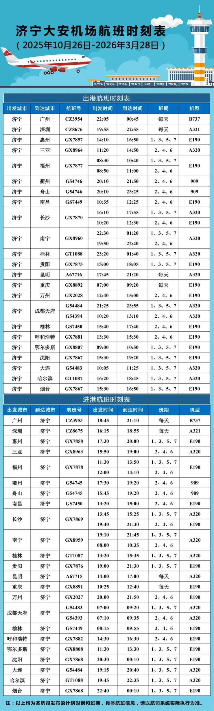 航班班期为每周二、四、六,“济宁=衢州=舟山”G54746航班20:10济宁起飞,21:50抵达衢州,23:25抵达舟山;“舟山=衢州=济宁”G54745航班15:45舟山起飞,17:30衢州起飞,19:20抵达济宁,形成高效往返。