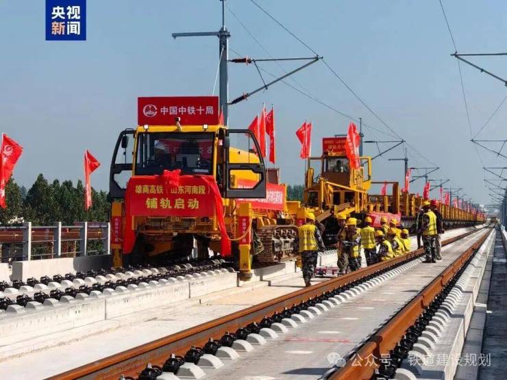 雄商高铁全线铺轨施工,标志着项目建设取得重大阶段性进展,为后续联调联试及开通运营奠定坚实基础。(完)