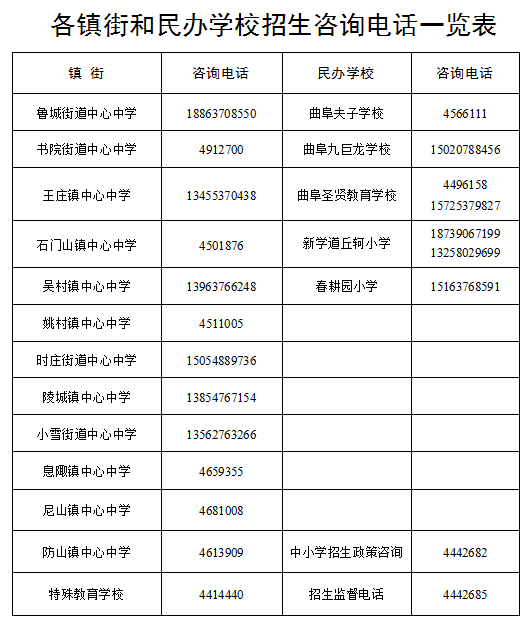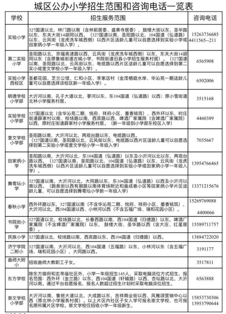 城区小学和初中学校招生服务范围和招生学校联系电话见附件。