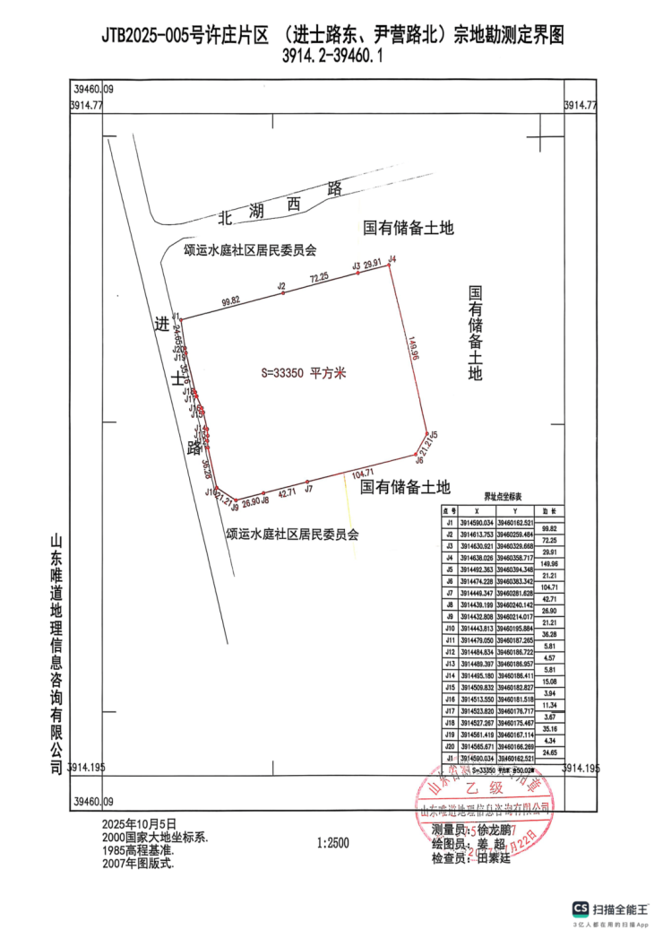 地块名:太白湖新区JTB2025-005号许庄片区(进士路东尹营路北)宗地【济宁盛众置业有限公司竞得】