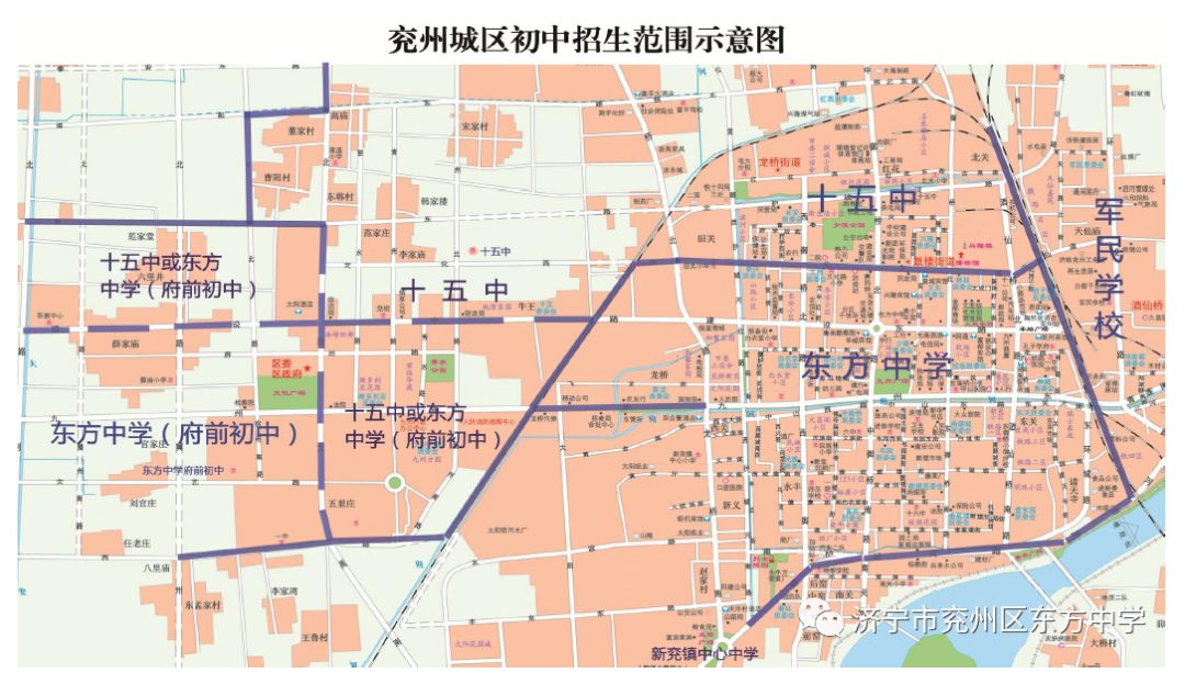 6、严格按照所属服务区招生,不招收其他学校服务区的学生。原高庙小学招生范围内的小学毕业生到十五中报名。 军民学校小学毕业生全部在本校初中部就读,另外招收京沪铁路以东的城区小学毕业生。矿山学校、山拖小学毕业生全部在矿山学校初中部就读。 兴隆庄煤矿学校小学毕业生全部在本校初中部就读。 薛庙小学原范围内薛庙、六里井、范家堂、范家庄、刘官庄、任老庄、齐王庙、杨家庄的小学毕业生,按照所属户籍报名,户籍属新兖镇的到兖州九中就读,户籍属城区龙桥办事处的到东方中学西校区(府前中学)报名。以上小学毕业生在城区确有住房的必须是父母房产,也可在相应服务区初中报名。