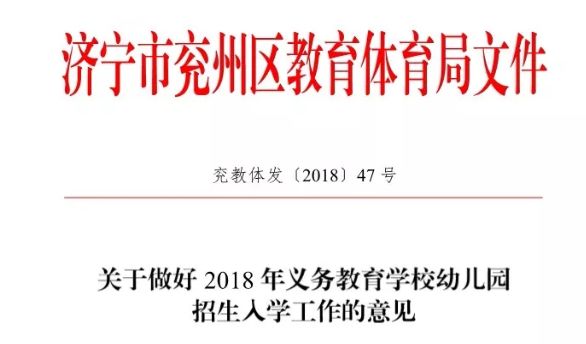 为进一步规范完善兖州城区义务教育阶段入学,按照《山东省教育厅关于做好2018年普通中小学幼儿园招生入学工作的通知》(鲁教基字【2018】8号)、《济宁市教育局关于做好2018年普通中小学幼儿园招生入学工作的意见》(济教体字【2018】73号)要求,依据“相对就近,免试入学”、“房户一致、房产优先”和公开、公平、公正的原则,做好2018年我校义务教育招生工作。