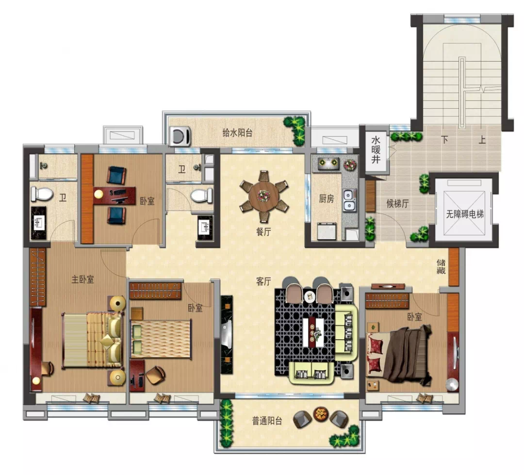 动静分离,三室朝南
