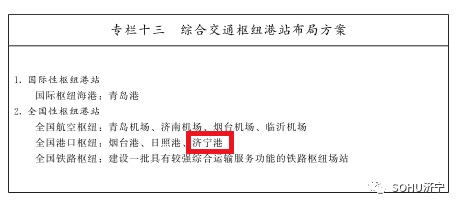 提高内河港口专业化、规模化水平,规划形成以济宁港为核心,枣庄港、菏泽港、泰安港、济南港为辅助,其他港口为补充的内河港口体系。