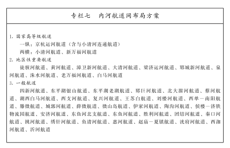提升干线航道能力,扩大航道通达范围,规划形成以京杭运河、小清河、新万福河为骨干,其他支线为补充的“一纵两横、三干多支”内河航道网总体布局,总里程约3100公里。京杭运河与小清河连通等航道远期展望为国家高等级航道。