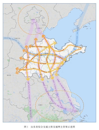 省域交通节点连接更加便捷顺畅,基本实现乡镇及以上行政中心30分钟上高速,县级行政中心45分钟上高铁、60分钟到机场,设区市行政中心30分钟上高铁、50分钟到机场。省会、胶东、鲁南经济圈建成“济南、青岛两心辐射,临枣济菏一带相连”的一体化交通网。对外与京津冀、长三角、黄河流域地区及周边省份之间的快速通道布局更加完善,高速(城际)铁路、高速公路省际出入口分别达到15、39个,全部省际相邻县均有高速公路连接。