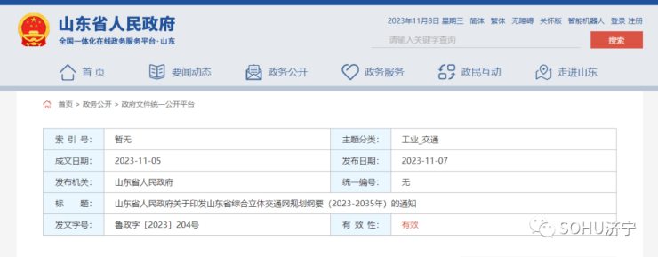 搜狐网济宁小编相关渠道获悉:近日,山东省人民政府印发山东省综合立体交通网规划纲要(2023-2035年)的通知,涵盖全省铁路、公路、水路、航空等运输方式的综合交通布局规划,其中多项涉及济宁。