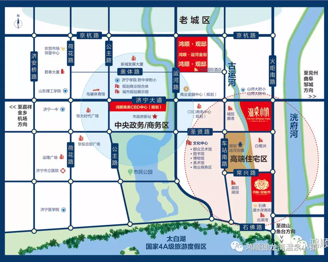 南北中央水系景观带及东西两条水系景观轴贯穿园区