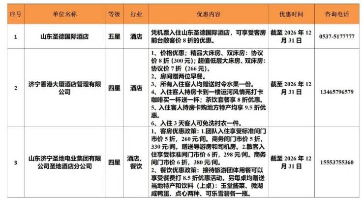 ▪凭落地济宁大安机场机票及个人身份证件,7天(含当天)内可兑换所有优惠