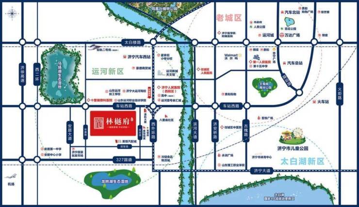 美恒·林樾府项目位于运河新城核芯区,西临即将建设的马场湖生态湿地、东临西外环以及京杭大运河、坐拥两河一湿地的天然景观。项目周边交通成熟,东侧紧邻环城高架和车站西路(双向八车道),车程15分钟可连通老城、高新、北湖片区,这也是别墅住区与城市的优佳距离,既可以享受到城市的繁华便利,又能远离城市的吵闹,可谓一城菁华资源簇拥,成就济宁峯层人群高品质生活墅区。