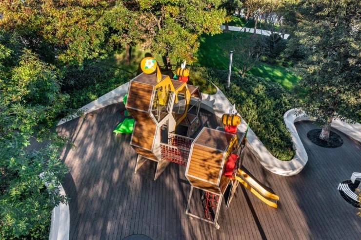 以蜜蜂与小伙伴们在林中探索游玩的故事线为主题,江悦的蜂巢乐园分龄段满足不同年龄段孩子的体能、兴趣和社交需求。铺装EPDM彩色陶瓷颗粒,设置家长陪伴休息区和储物功能空间,只为给业主的家庭生活增添更多陪伴意趣。