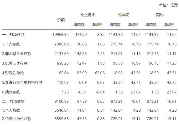 近日,搜狐网济宁小编从济宁市人民政府官网了解到,截至2025年12月份末,济宁市各项存款余额10969.95亿元,比上月末增加314.8亿元,增幅2.95%,具体如下: